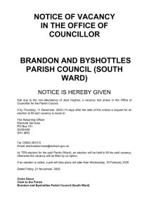 Notice of Vacancy – Brandon and Byshottles ( Ushaw Moor )